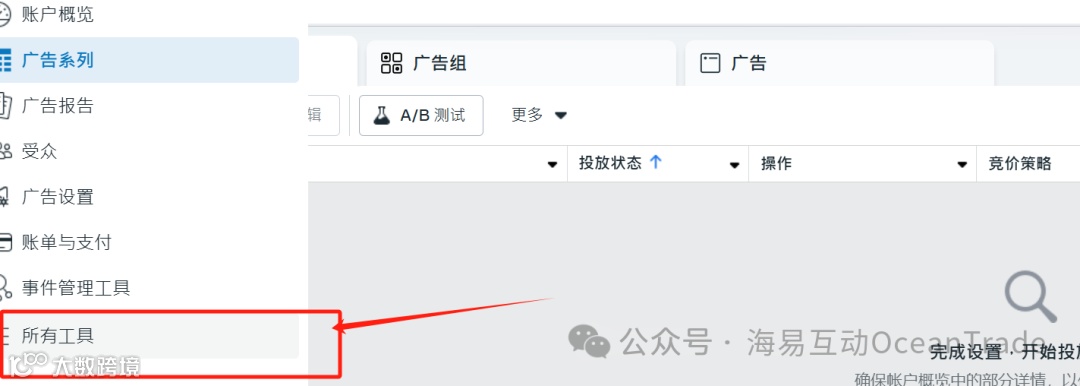 登录Facebook账号,进入广告管理工具[k]