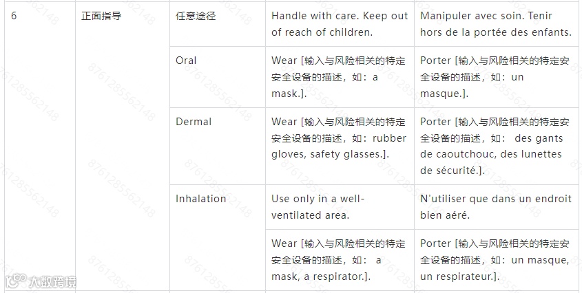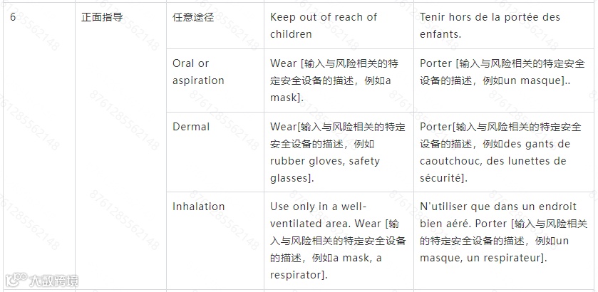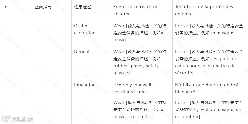 《消费化学品和容器条例》(CCCR 2001) 还规定了其他标签要求。诸如标签大小、标签字体、标签位置以及透明包装、小容器包装等要求。例如: