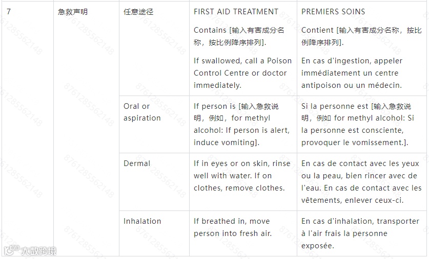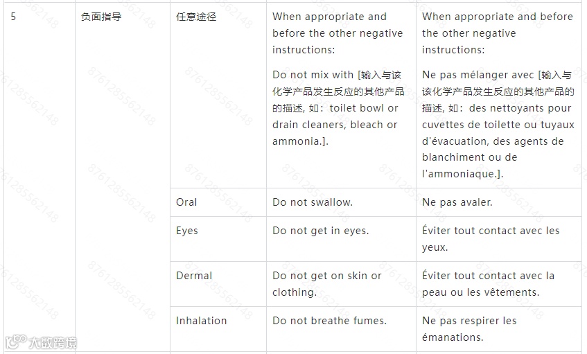 销往加拿大的消费类化学产品必须符合适用的法律法规及标签、包装要求,禁止销售“剧毒”(Very Toxic)、“强腐蚀性”(Very Corrosive)及“非常易燃”(Very Flammable)产品。以下是对条例中标签要求的参考性摘要,仅作为信息指导供您参考,您有责任开展必要调查或咨询专业顾问,仔细了解并严格遵守您的商品可能适用的任何安全性与合规性的政策和要求。如果以下摘要与立法有任何差异,请以立法为准。