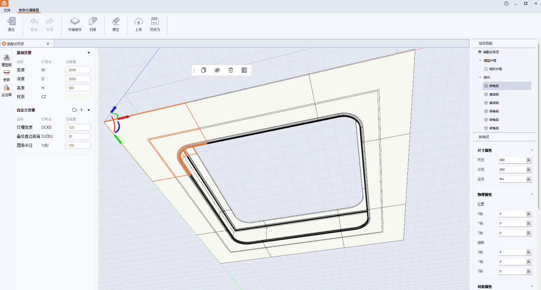 基础部件能够通过绘制图形轮廓、装配三维造型,用参数配置出造型的变化规则