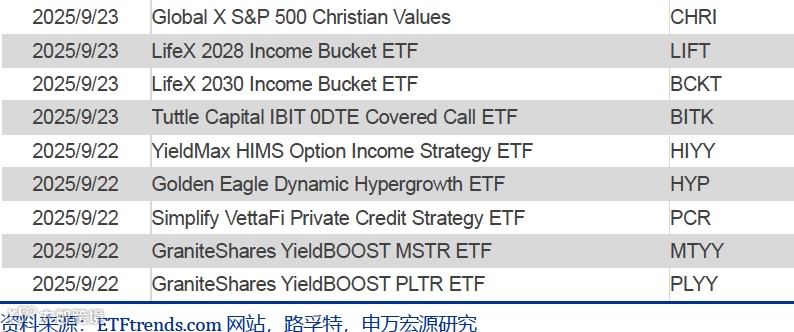 Global X 9月底发行半导体和量子计算ETF,Wisdomtree上周也发行了类似产品;此外,军工主题产品近期关注度也较高。