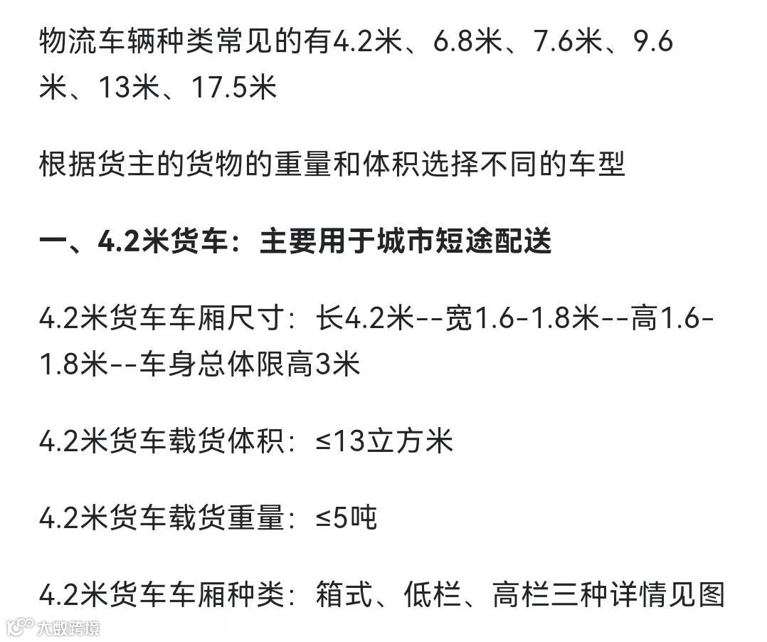涵盖4.2米至17.5米主流货运车型,助力高效运输选型