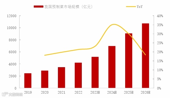 据报道,中国预制菜的发展势头强劲,数据显示,2023年中国预制菜市场规模为5165亿元人民币,同比增长23.1%,到2026年有望超过10720亿元。