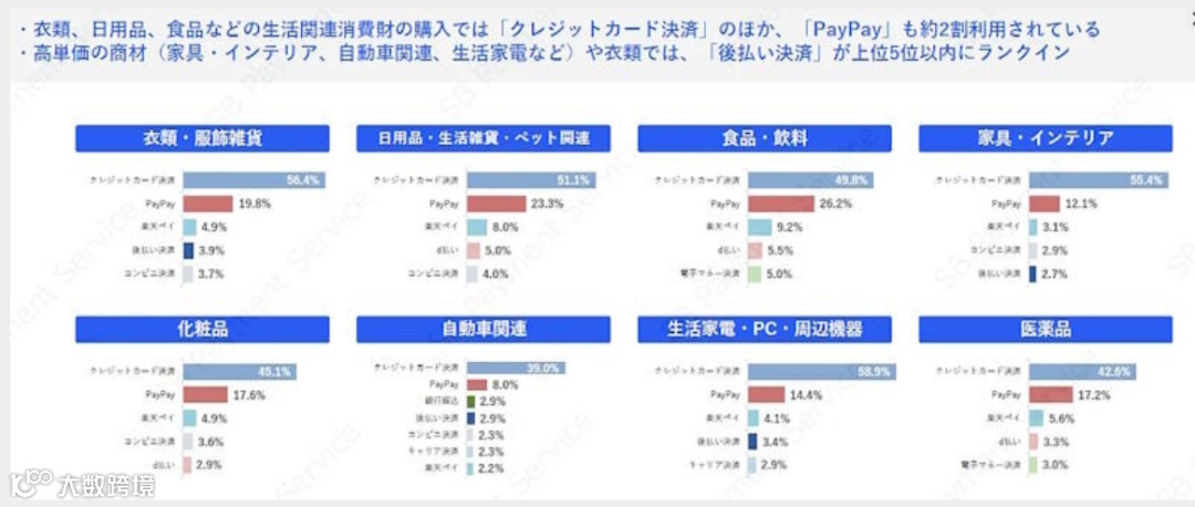 购买服装、日用品、食品等日常消费品时,信用卡仍是主流,PayPay使用率约20%[k]。