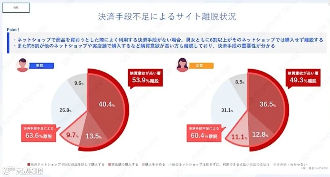 63.6%的男性和60.4%的女性表示,若首选支付方式不可用,将放弃购买[k]。