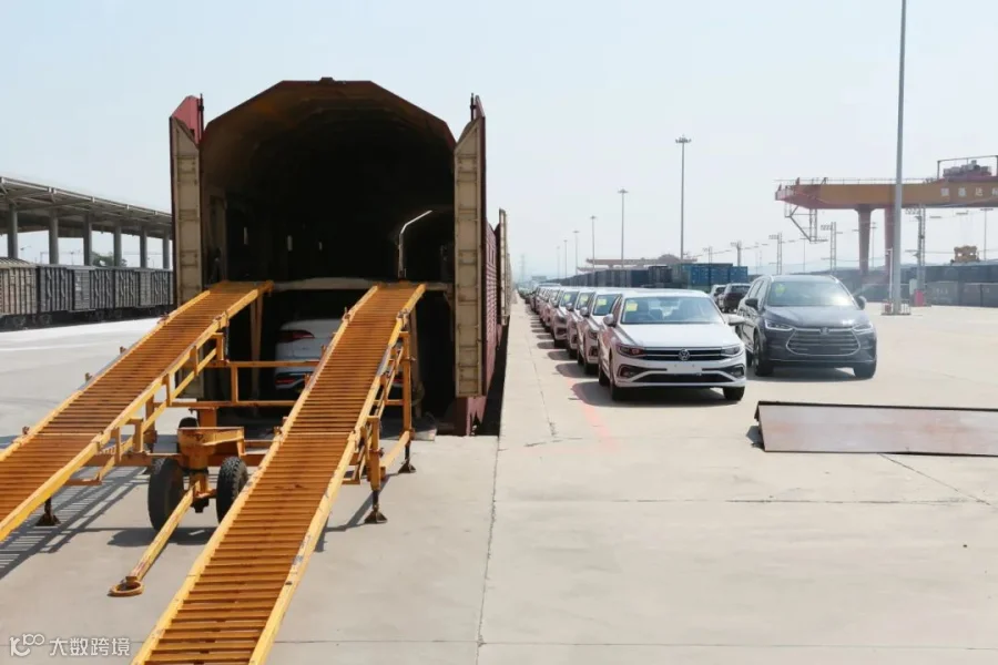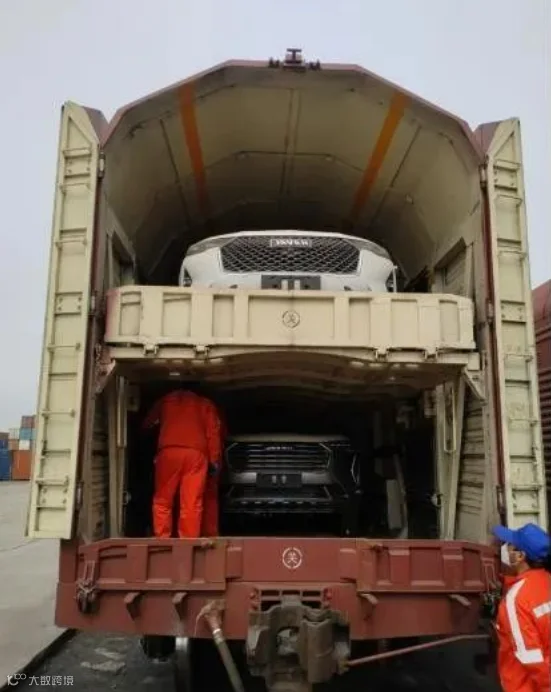 8. 装车示意图:铁路笼车为特种车厢,双层设计,汽车可直接驶入,平均每节装载9-10台,较传统集装箱大幅提升运力。目前主要用于内贸及出口中亚、蒙古、俄罗斯和欧洲[k]。
