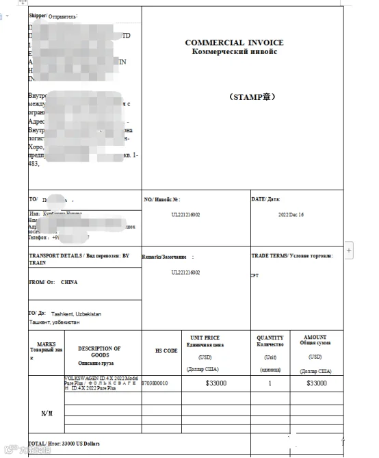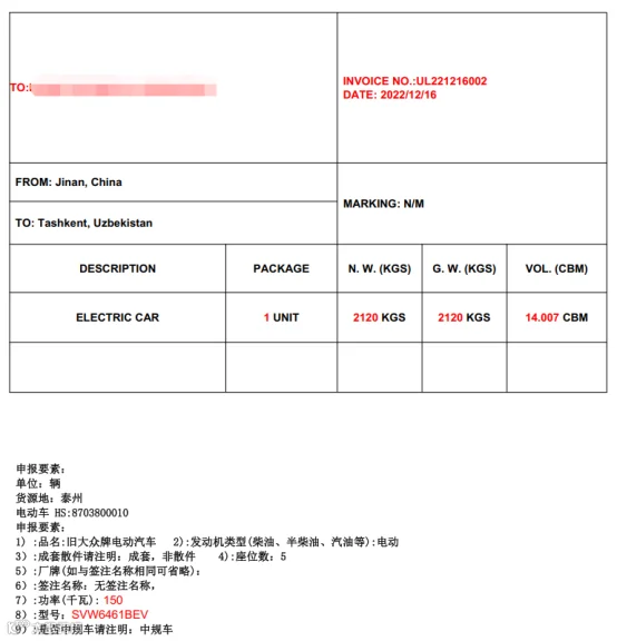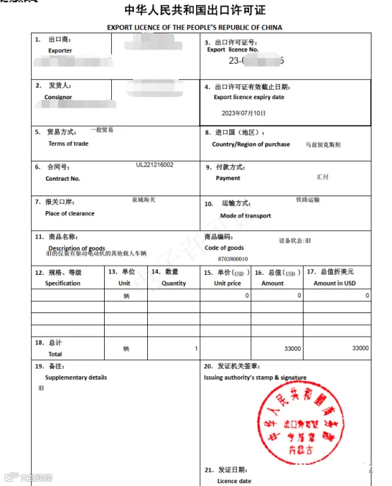 3. 外贸文件:需准备发票(INVOICE)、箱单(PACKING LIST)、销售合同(SALES CONTRACT),收发货人信息须与出口许可证一致。多台车可合并填报[k]。