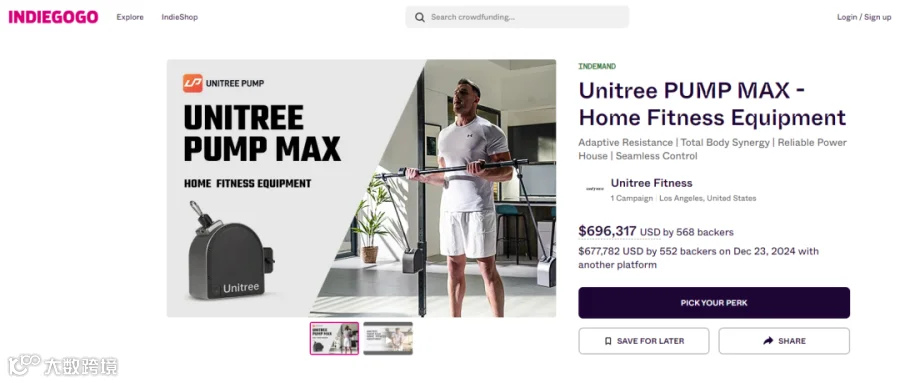 自2022年10月份项目正式启动,直至2024年12月正式上线Indiegogo,PUMP MAX已获得568名用户支持,募集超过69万美元。一个月后该产品也于众筹平台Kickstarter推出,最终收获552名支持者筹集超过67万美元。