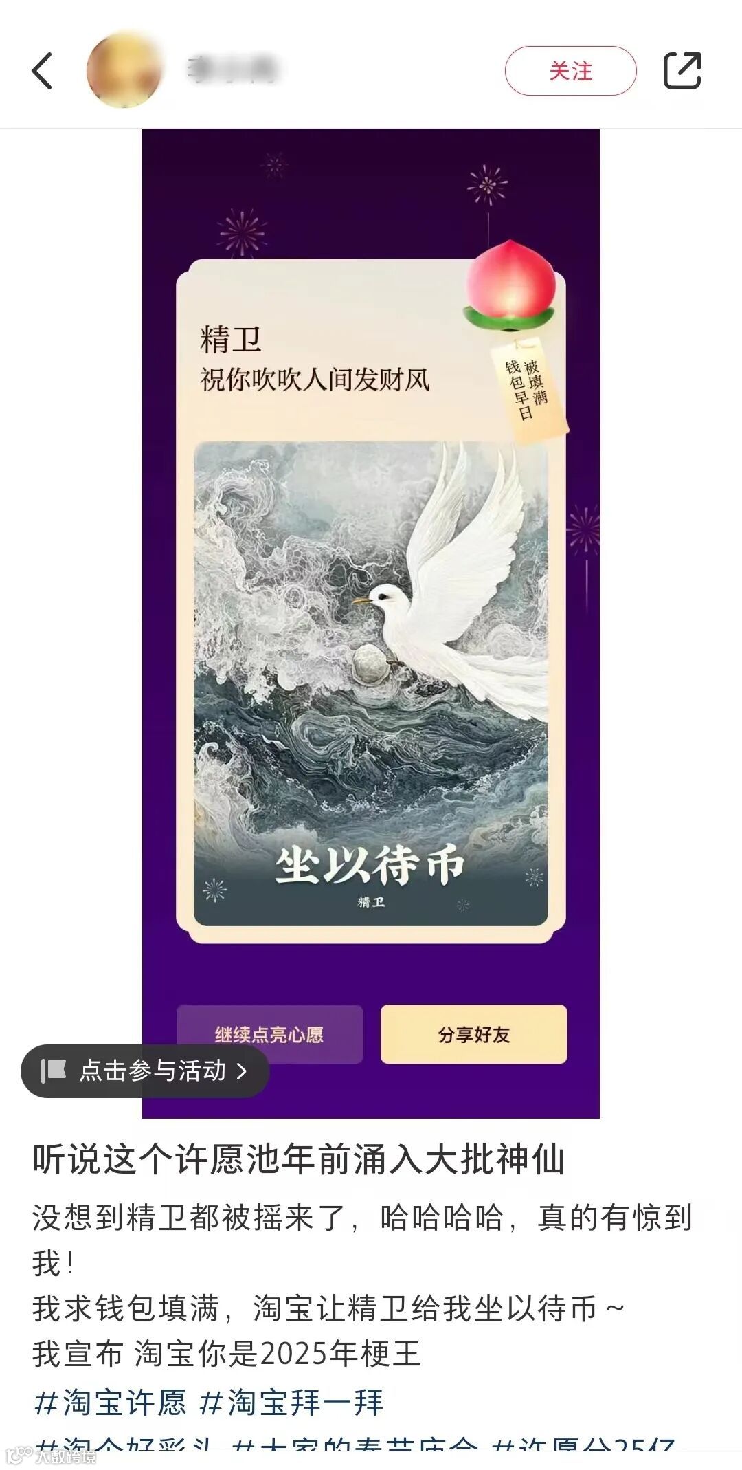 万能的淘宝,今年春节化身成了许愿池的王八,bushi,许愿界的“六边形战士”,为网友的各种心愿精准对接各路“菩萨”,2025心想事成,包的!