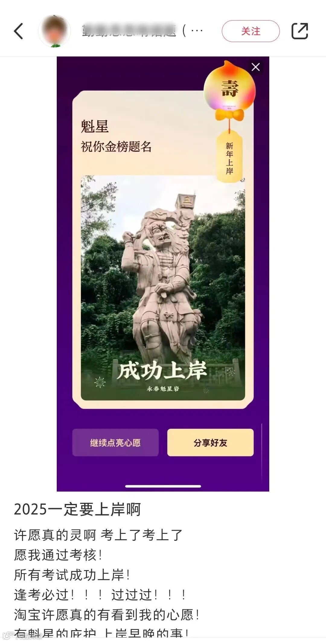 有网友想成功上岸,主宰文运的魁星出来接单了:祝你金榜题名。这简直是考场的“最强外挂”。