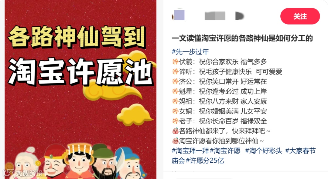 求平安的,有济公罩着;求子的,有女娲负责给你捏;专门针对福建id的,淘宝还请来了妈祖……每个人的新年愿望都能在淘宝找到专属的神仙“客服”,淘宝算是把“垂直细分”菩萨这件事给整明白了。