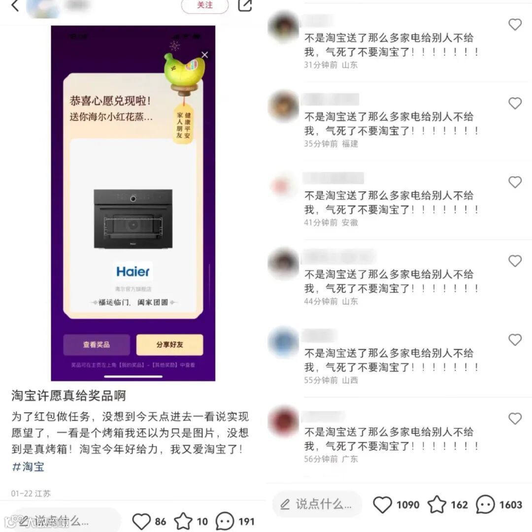 据说已经有7.53亿网友今年过年集体冲到淘宝许愿,“希望我的crush爱上我”“我嗑的CP原地结婚”“今年不吃老板的大饼”……不得不说,这些愿望的活人感也太重了。