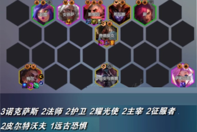 阵容羁绊:3诺克萨斯+2法师+2护卫等