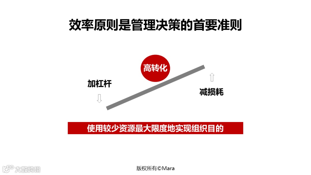 之所以强调效率原则,是因为企业经营管理永远都是在一定的约束条件和边界框架下做有限的选择。如果在经济上行期对“约束条件”和“边界框架”不够敬畏,那么进入经济下行期大家的体感应该就非常强烈了。