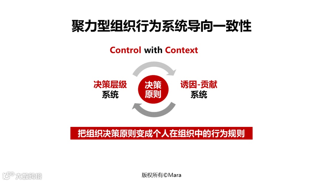 构建一套导向一致性的组织行为系统,从抹平组织中的介质差异开始——用统一的组织决策原则替代组织成员迥异的个体决策偏好,把组织决策原则变成个人在组织中的行为规则。