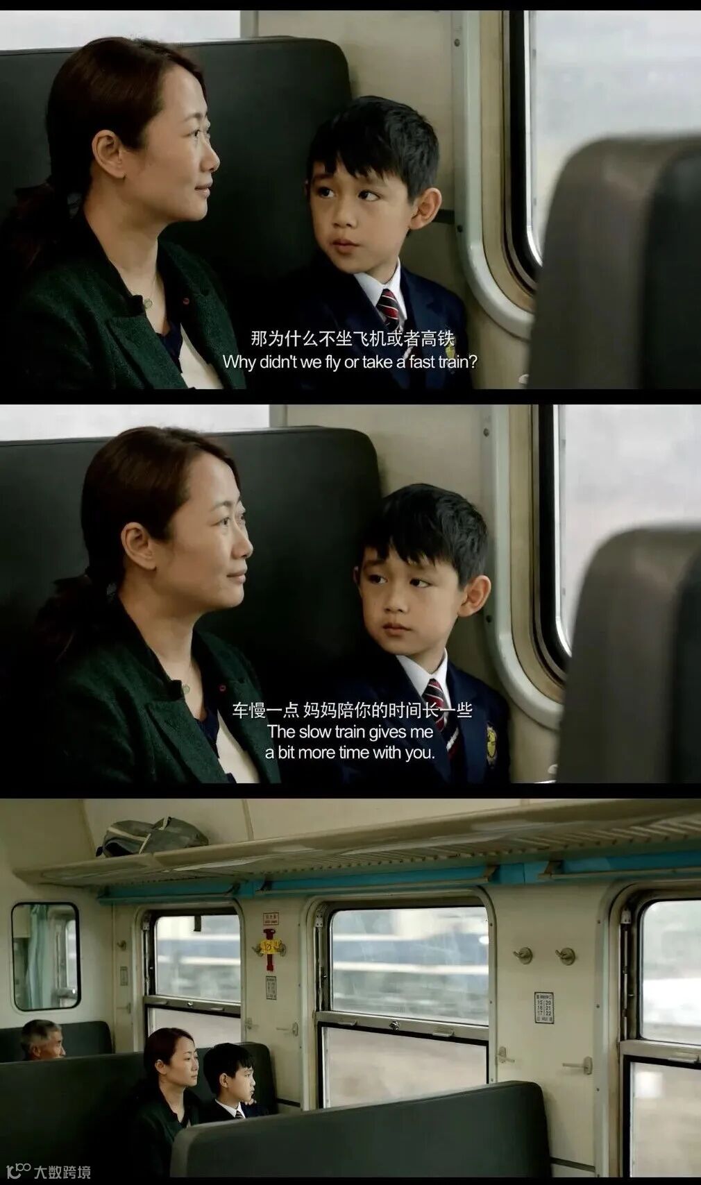 母子绿皮火车送别时,沈涛将家门钥匙交给儿子:“车慢一点,能陪他的时间就多一点”。