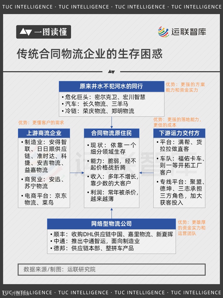 各类竞争对手的优势愈加明显,传统合同物流企业也愈加困惑。
