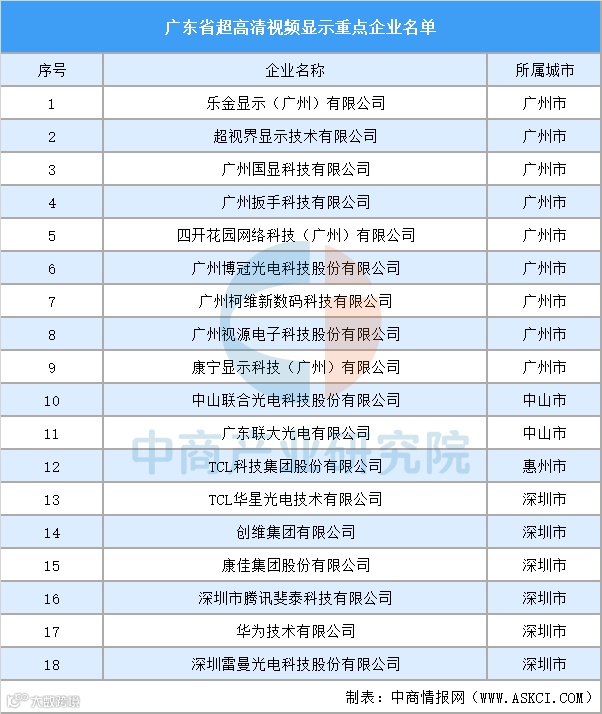 广东超高清视频显示龙头企业分布情况