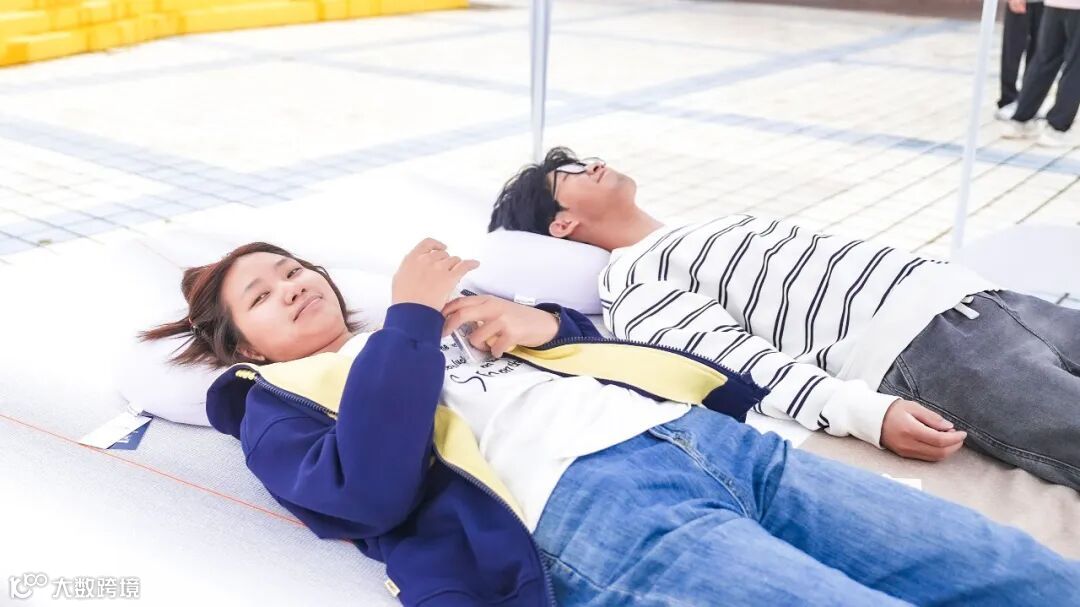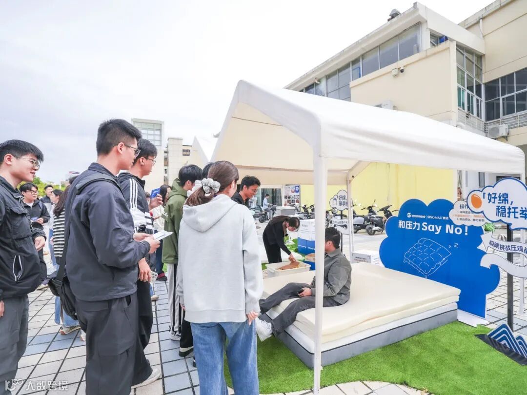 如果说互动实验是科技的演示,那么 “好眠体验区” 则是产品效能最真实的检验场。许多同学带着好奇躺下,随即传来阵阵惊叹:“肩和腰被稳稳托住了,完全没有悬空感。”、“透气性很好,一点不闷热。”、“本来只是想试试,没想到这么舒服。”