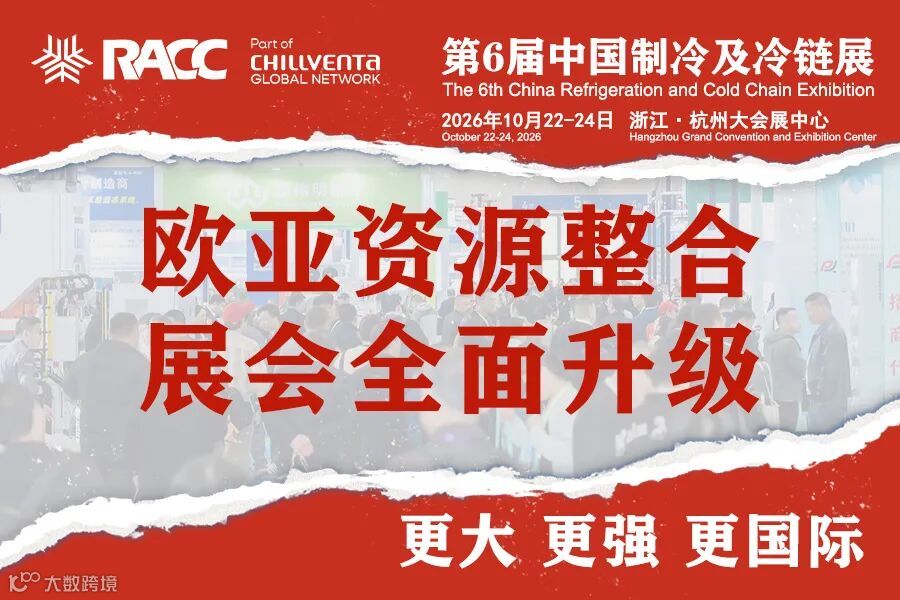 中国制冷及冷链展(RACC EXPO)由德国纽伦堡国际博览集团、浙江省国际商会、浙江省制冷学会、浙江省制冷空调行业协会、浙江省氟化学工业协会共同主办,纽伦堡飞马(杭州)会展有限公司承办,集中展示空调、通风、热泵、制冷及冷链等全产业链产品,致力于搭建集展示、交流、合作于一体的国际平台,整合全产业链资源与前沿创新成果,助力企业破解转型壁垒、穿越周期,推动行业高质量发展。经过五年深耕,RACC EXPO已成为企业品牌推广和开拓全球市场的重要渠道。