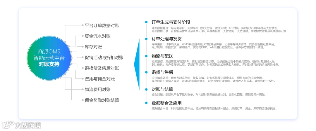 - 与业务深度集成的结算中枢:与OMS、B2B/DMS系统打通,确保分账数据源自真实订单,避免业务与财务脱节。