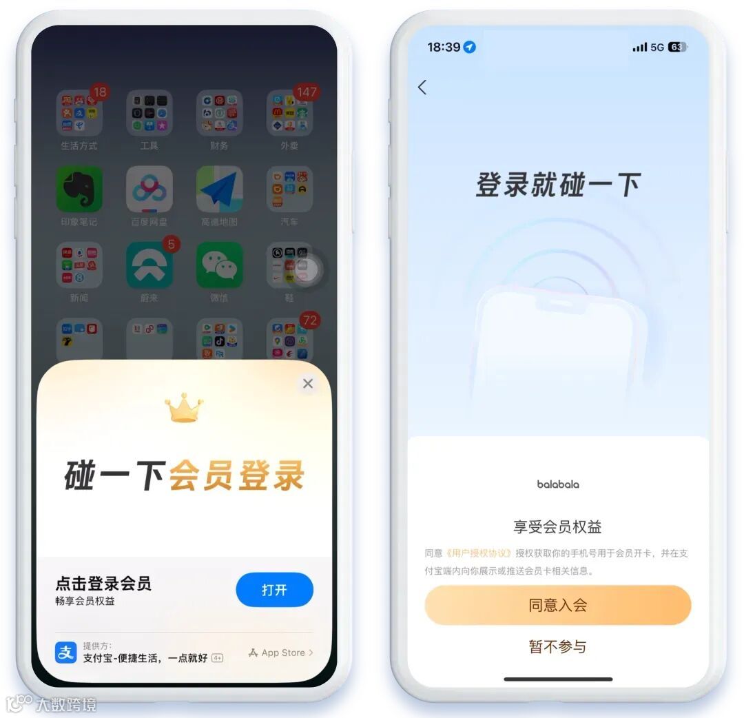 图: 支付宝“碰一下入会”功能