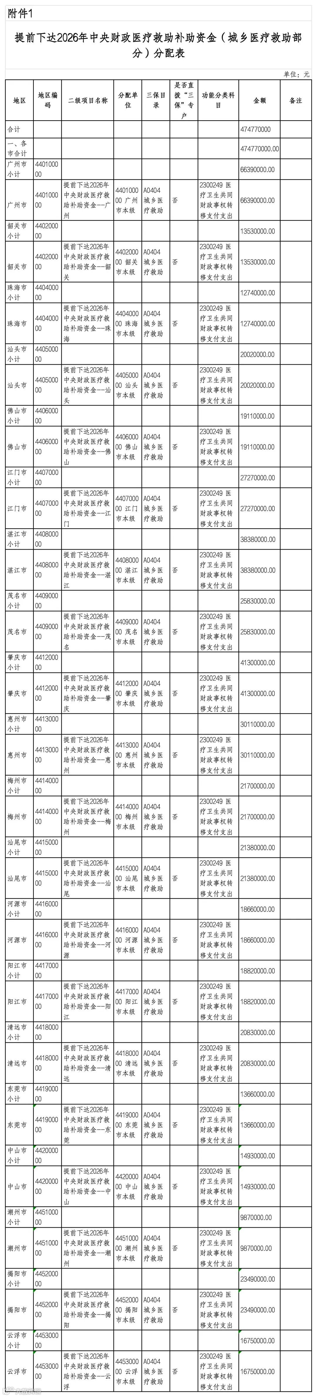 广东省方面,12月8日,省财政厅提前下达多项2026年中央财政补助资金: