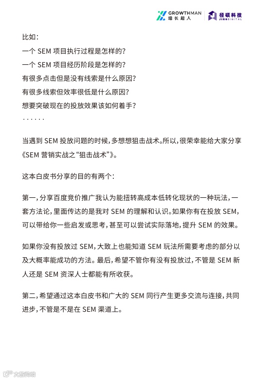 为此,增长超人发布《官网渠道 SEM 狙击战术白皮书》,旨在帮助企业破解高投入低转化的困境。
