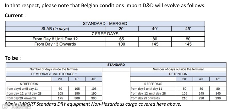 所有港口的免费堆存及用箱时间由7天缩减至4天,自第5天起开始计费。