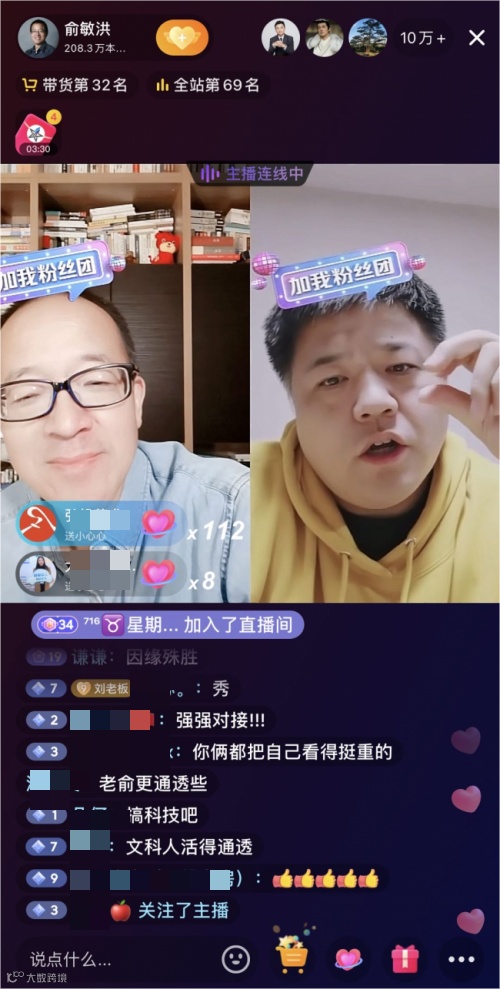 罗永浩在直播间调侃俞敏洪 图源:抖音