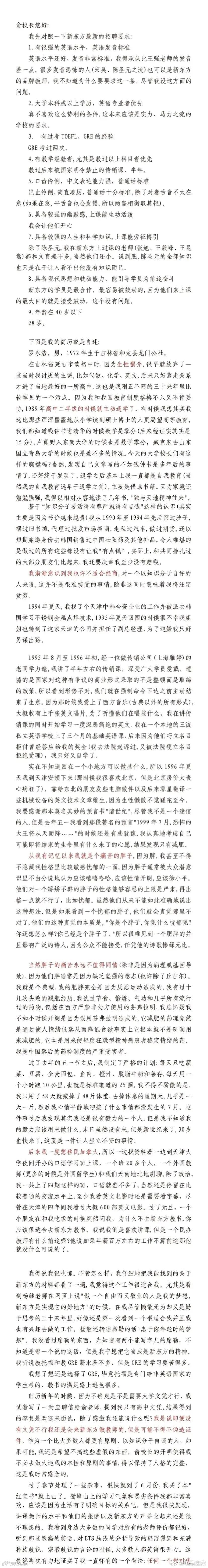 2000年12月,听说新东方英语老师年薪百万的罗永浩,给时任北京新东方学校校长的俞敏洪写了一封万字求职信,极尽所能地向俞敏洪证明自己有多么适合这个岗位。
