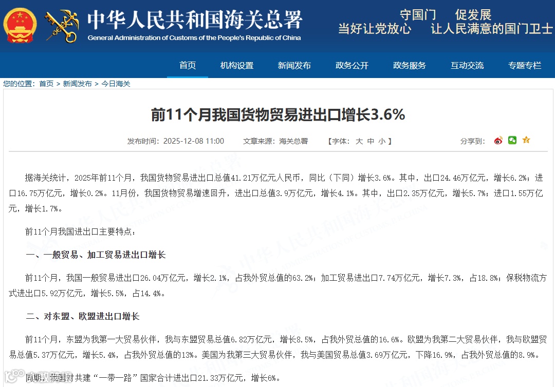 东盟已取代美国成为我国第一大贸易伙伴,前11个月双边贸易增长8.5%;欧盟市场保持5.4%的稳健增长。企业应加快在这些区域布局: