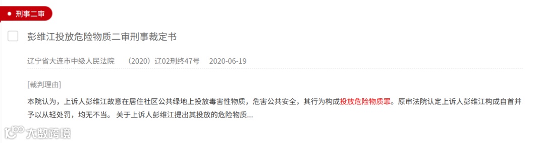 尽管此案因“北京首例”的标签而备受瞩目,但在聚光灯之外,相似的悲剧在许多城市角落静默发生。翻看裁判文书网,可以看到很多关于“毒狗”的判决: