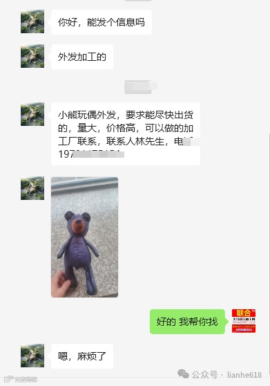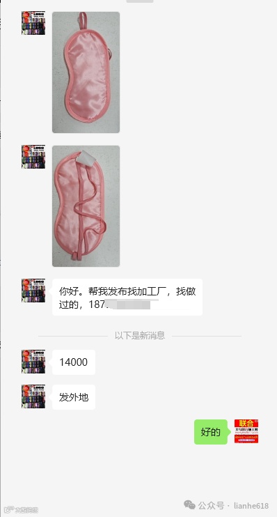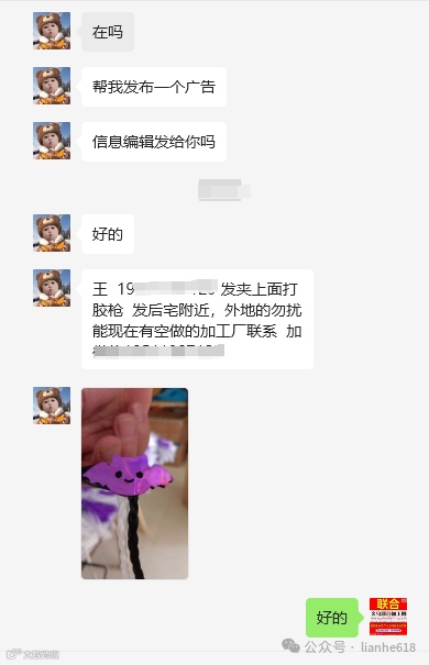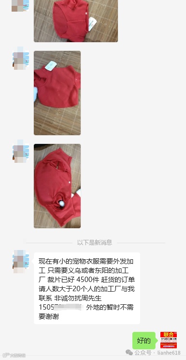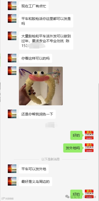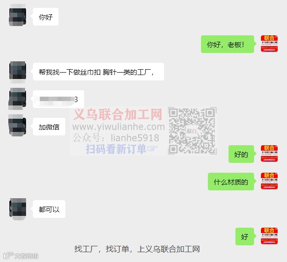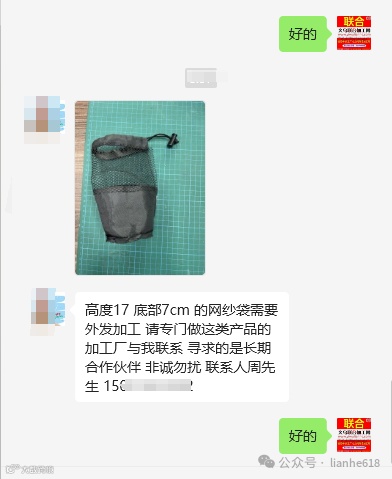 官网团队提醒:以上外发信息摘自义乌联合加工网,想获取更多订单请关注上方公众号即可查阅
