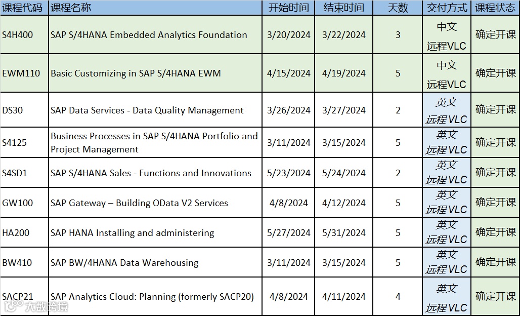 登录training.sap.com 输入课程代码, 查询课程详情、价格、注册报名,或直接通过下方联系方式联系我们。
