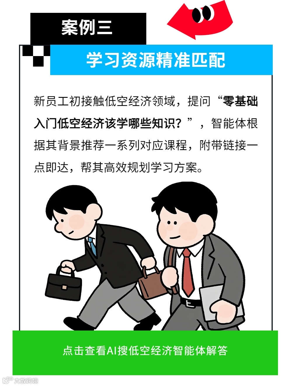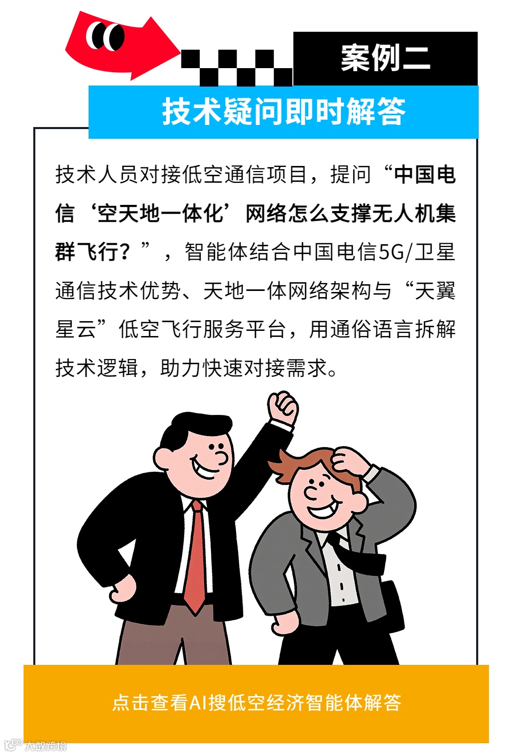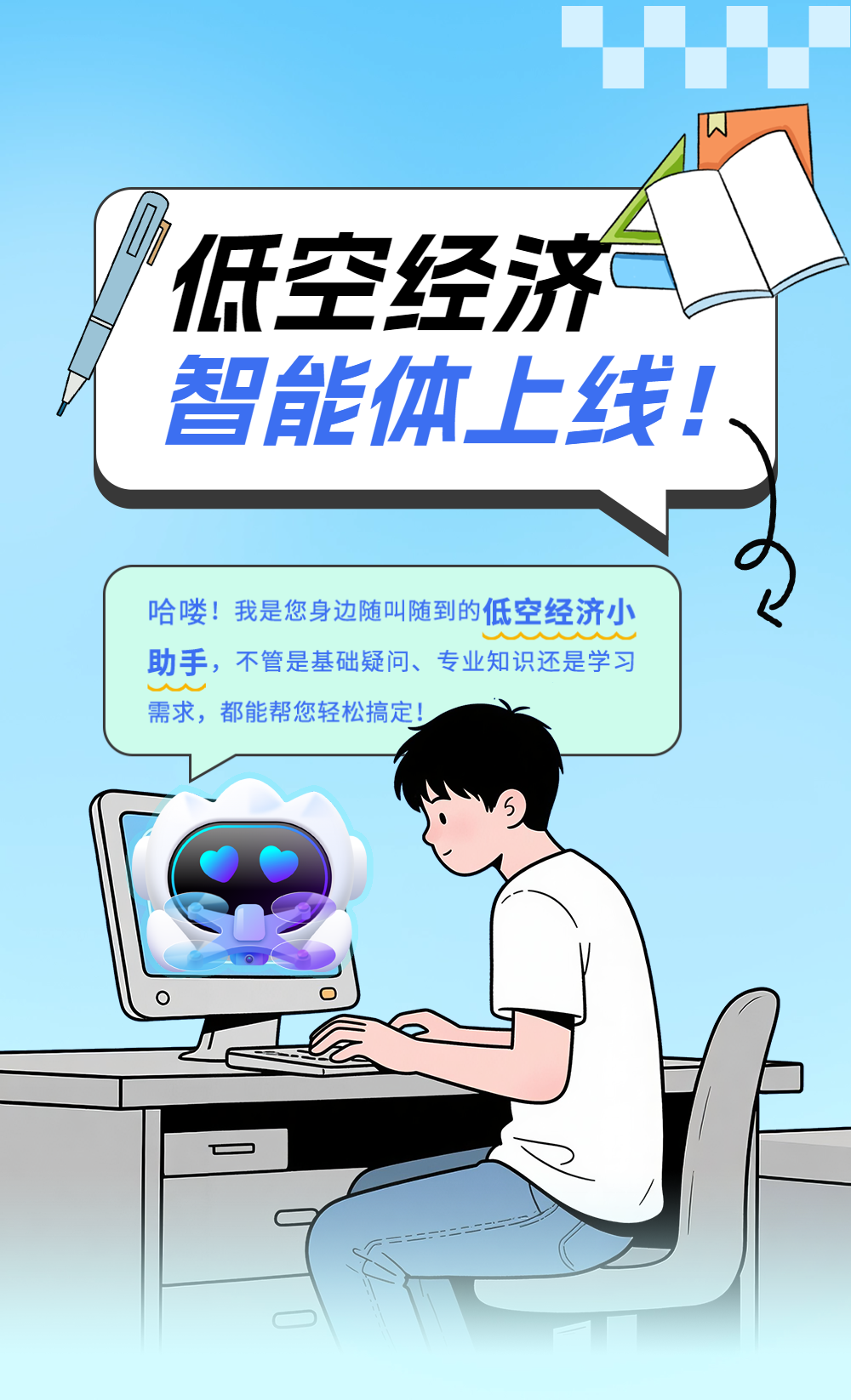 登录中国电信智慧学习平台→进入“AI搜”→输入@后选择“低空经济智能体”即可使用!