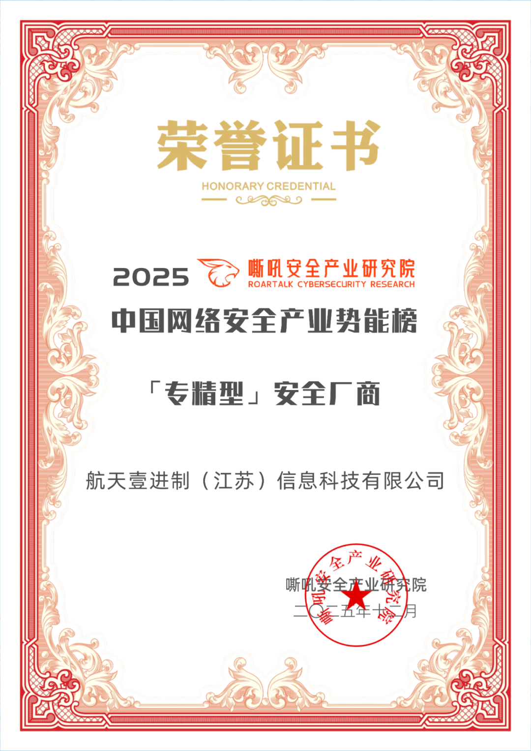 近日,嘶吼安全产业研究院正式发布《嘶吼2025中国网络安全产业势能榜》,航天壹进制凭借在数据安全领域的持续深耕与卓越表现,入选「专精型」企业榜单,彰显了公司在专业赛道上的技术实力与市场影响力。