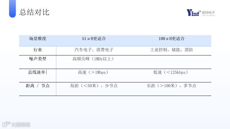100μH的共模电感能有效抑制低频干扰,并且在大尺寸封装下,满足长距离、多节点通信对电感性能的要求