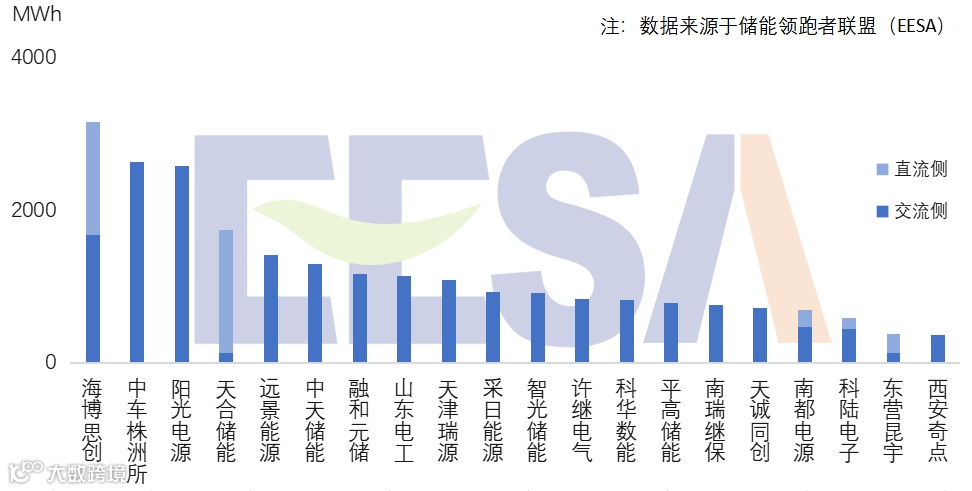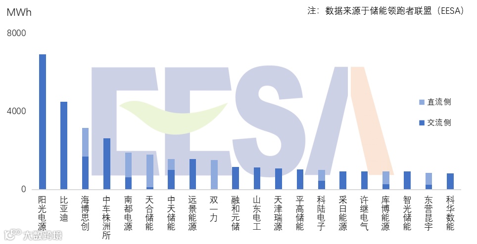 1. 中国企业国内储能系统集成(不含户储)出货量TOP20