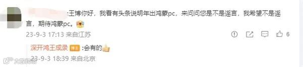 事实上,今年9月,“鸿蒙之父”深圳开鸿数字产业发展有限公司CEO王成录就曾在回复网友评论时确认,“明年会有鸿蒙PC”。