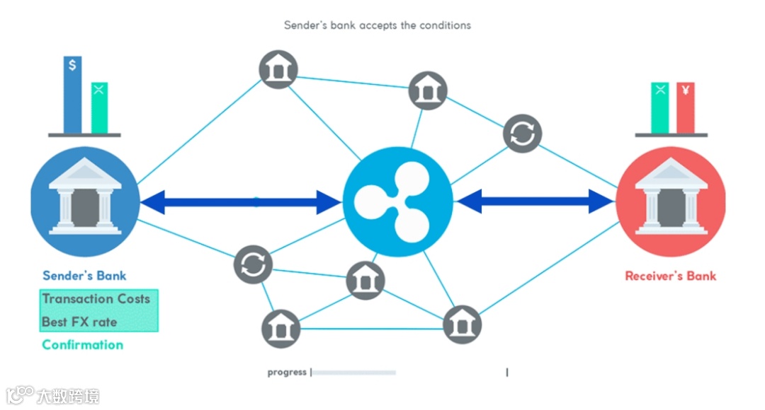 - 发起端:美国银行A通过RippleNet向墨西哥银行B发起转账;