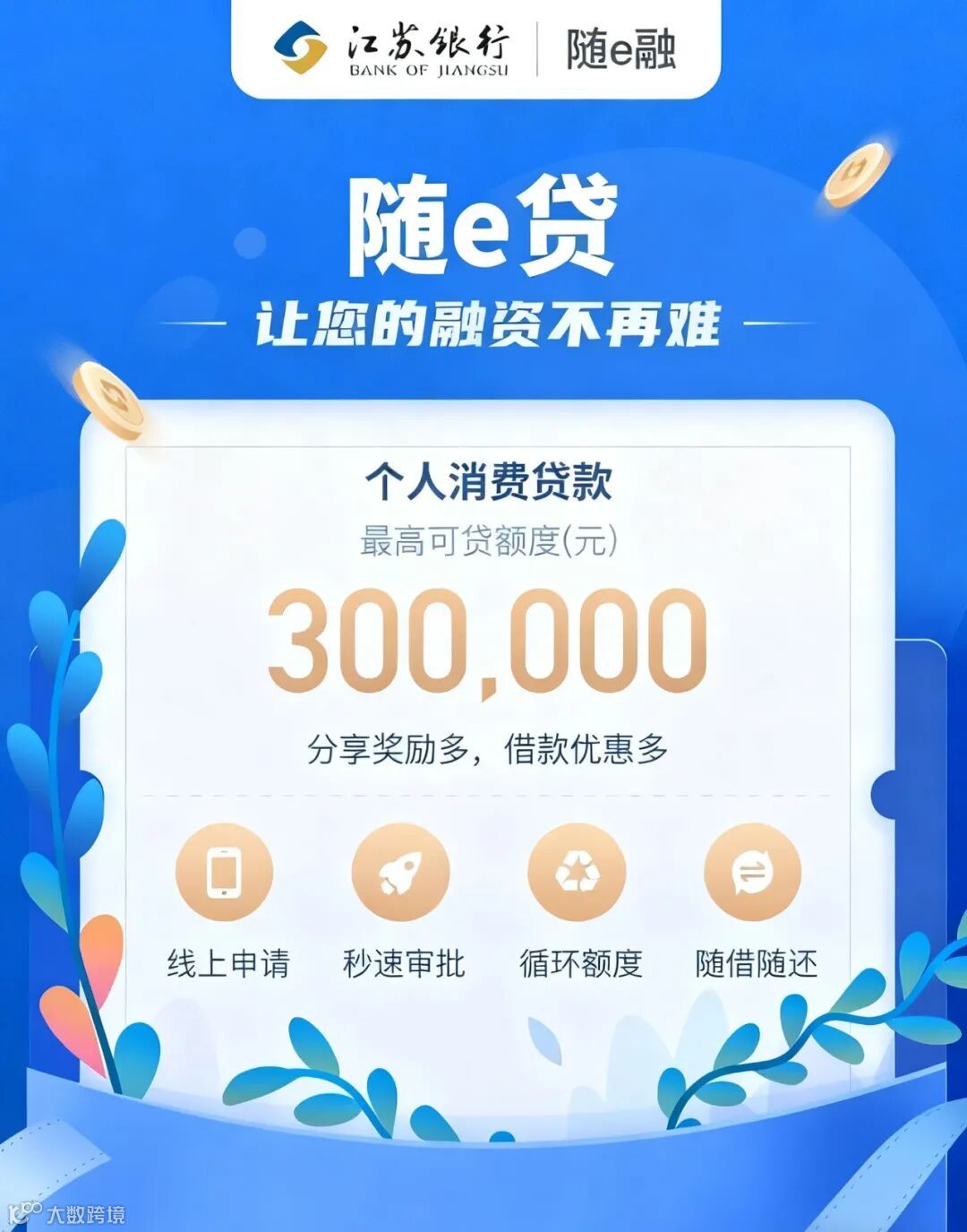 江苏银行推出的纯线上、无抵押、无担保个人信用消费贷款,利用大数据技术和风控模型,为符合要求的个人客户提供便捷、快速的融资服务,旨在满足客户日常消费、购物、旅游、教育等资金需求。