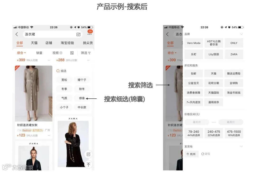 典型产品: 相关搜索、筛选、泛词引导/锦囊、搜索纠错,搜索确认、搜索排序