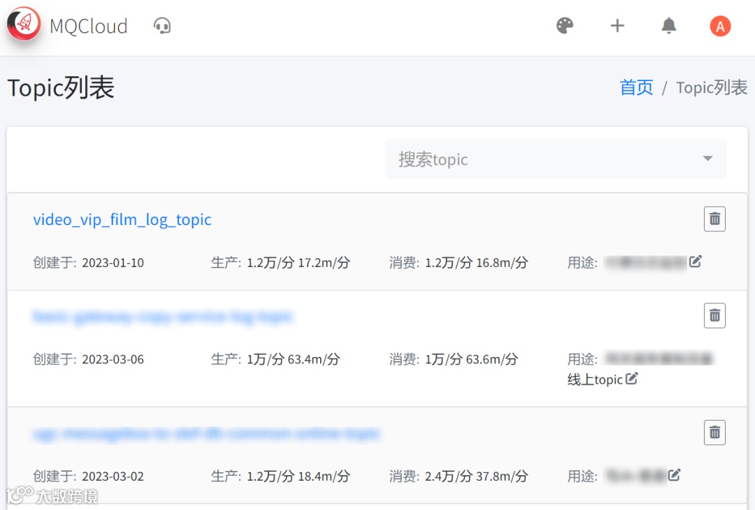 用户Topic列表: 不同用户可以看到不同的Topic,实现权限隔离 -