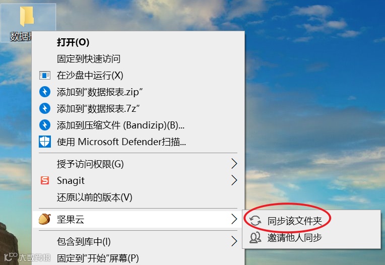 右键点击这个文件夹,选择【坚果云】->【同步该文件夹】。