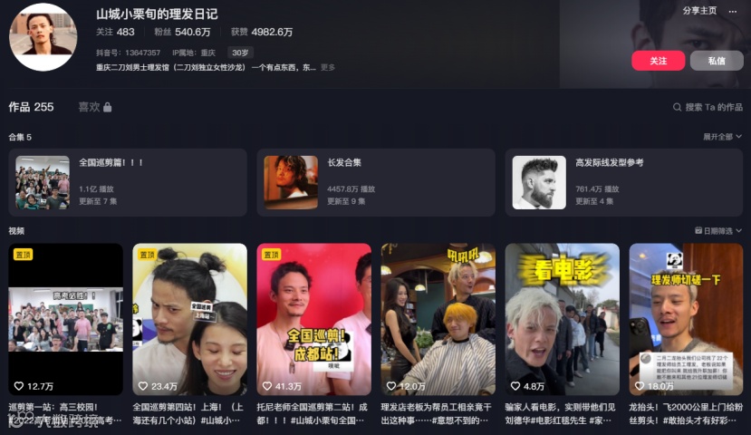 另一个比较出名的就是@山城小栗旬的理发日记,通过“开头(说出你的想法)+中间(嵌套剧情)+结尾(交作业时间)”的模式,呈现理发的全过程,曾单月涨粉200万。一句“年轻人就不要着急用青春换钱,要用青春换不可复制的能力。”让粉丝奉为圭臬。