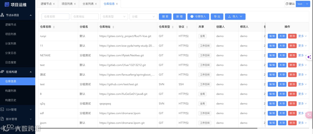 需要构建的项目(仓库)信息,需要手动添加,构建支持 git 仓库的拉取。