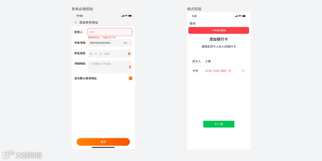 输入校验即时报错:实时验证,显示错误提示,影响较小。