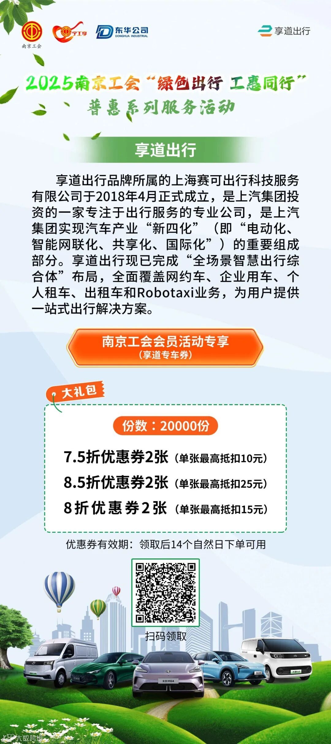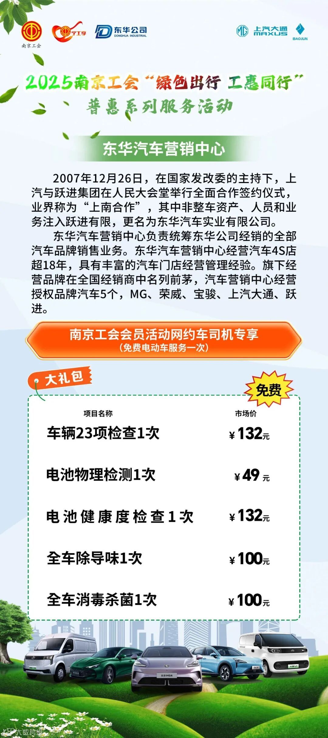 南京工会会员还可额外享受配套的 “购车福利包”。(含车享家养护券、享道出行打车券等)