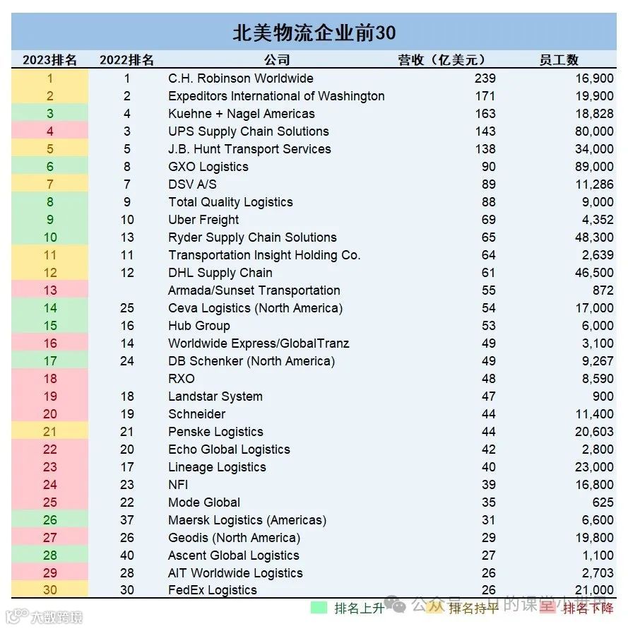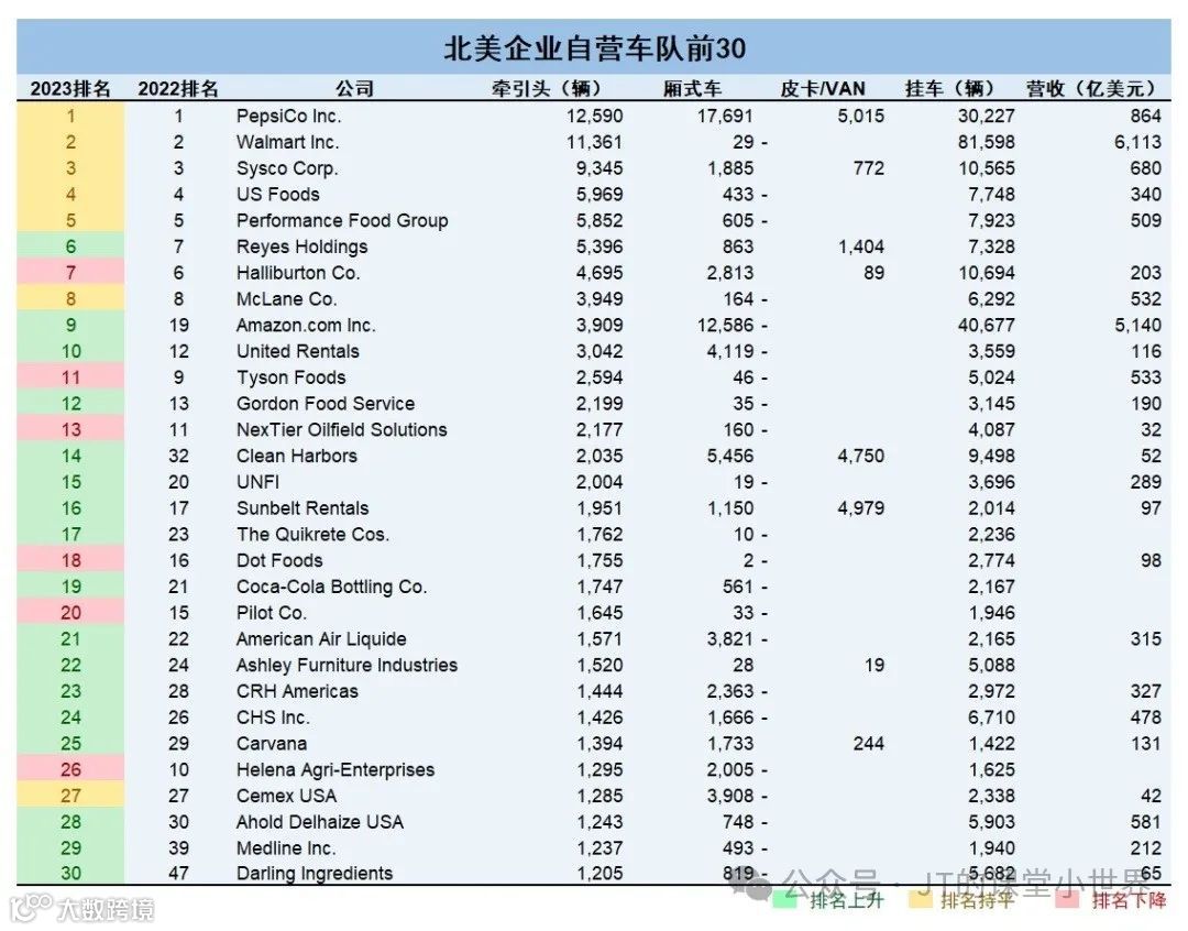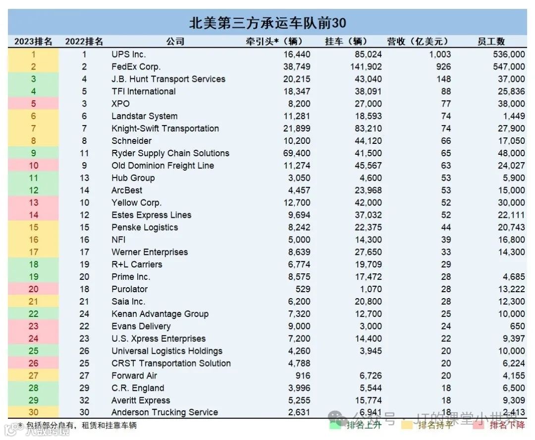 这次分享北美2023年最新的第三方承运、企业自营车队和物流企业的排名。